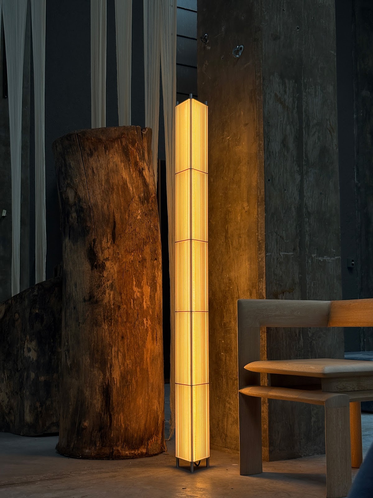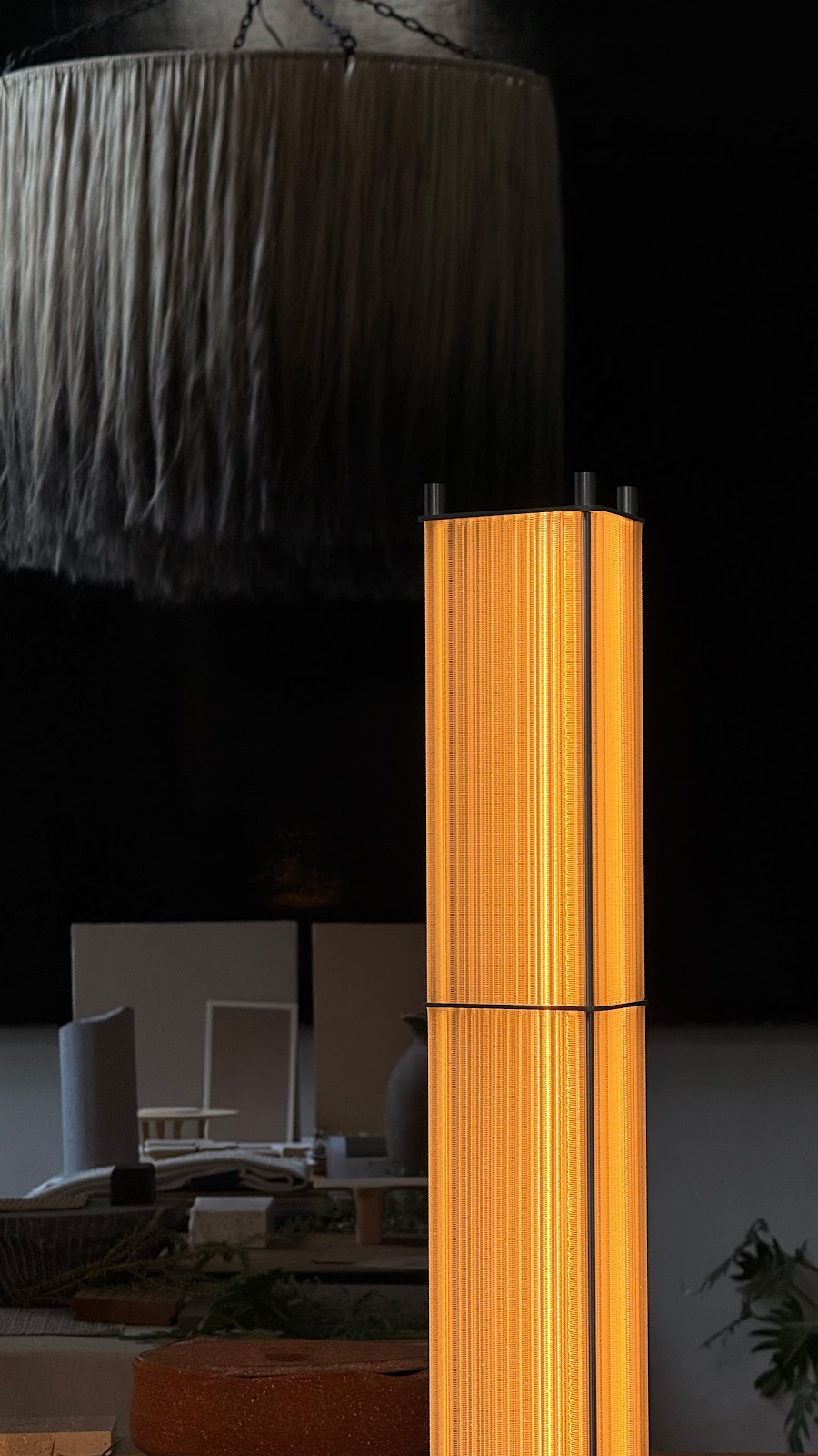 Colección de esculturas lumínicas desarrollada con pantallas traslúcidas hechas en PETG y aluminio. El resultado es una pieza que acompaña al usuario a través del espacio, sumergiéndolo en una experiencia visual que busca romper la cotidianeidad y exaltar los sentidos. La colección está compuesta por 4 luminarias que buscan desafiar la geometría clásica, exponiendo sin reservas sus procesos y ensambles. La crudeza de los materiales redefine la experiencia de revelar, mirar y experimentar la luz.