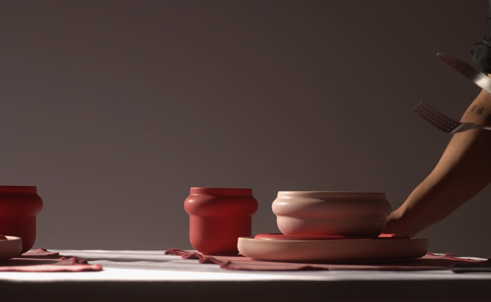 Vajilla de cerámica de alta temperatura, elaborada a mano mediante el proceso de vaciado cerámico, lo que asegura repetición en las formas y resistencia en el uso cotidiano. Inspirada en los rituales culinarios reconocidos por la UNESCO como Patrimonio Cultural Inmaterial de la Humanidad, esta colección busca rendir homenaje a la comida como lenguaje universal y vínculo entre comunidades. El proyecto consta de 5 piezas que conforman una familia de objetos cohesionada bajo un mismo planteamiento estético. El elemento toroidal funciona como recurso formal recurrente que se repite con variaciones en cada pieza, creando una unidad visual y conceptual.