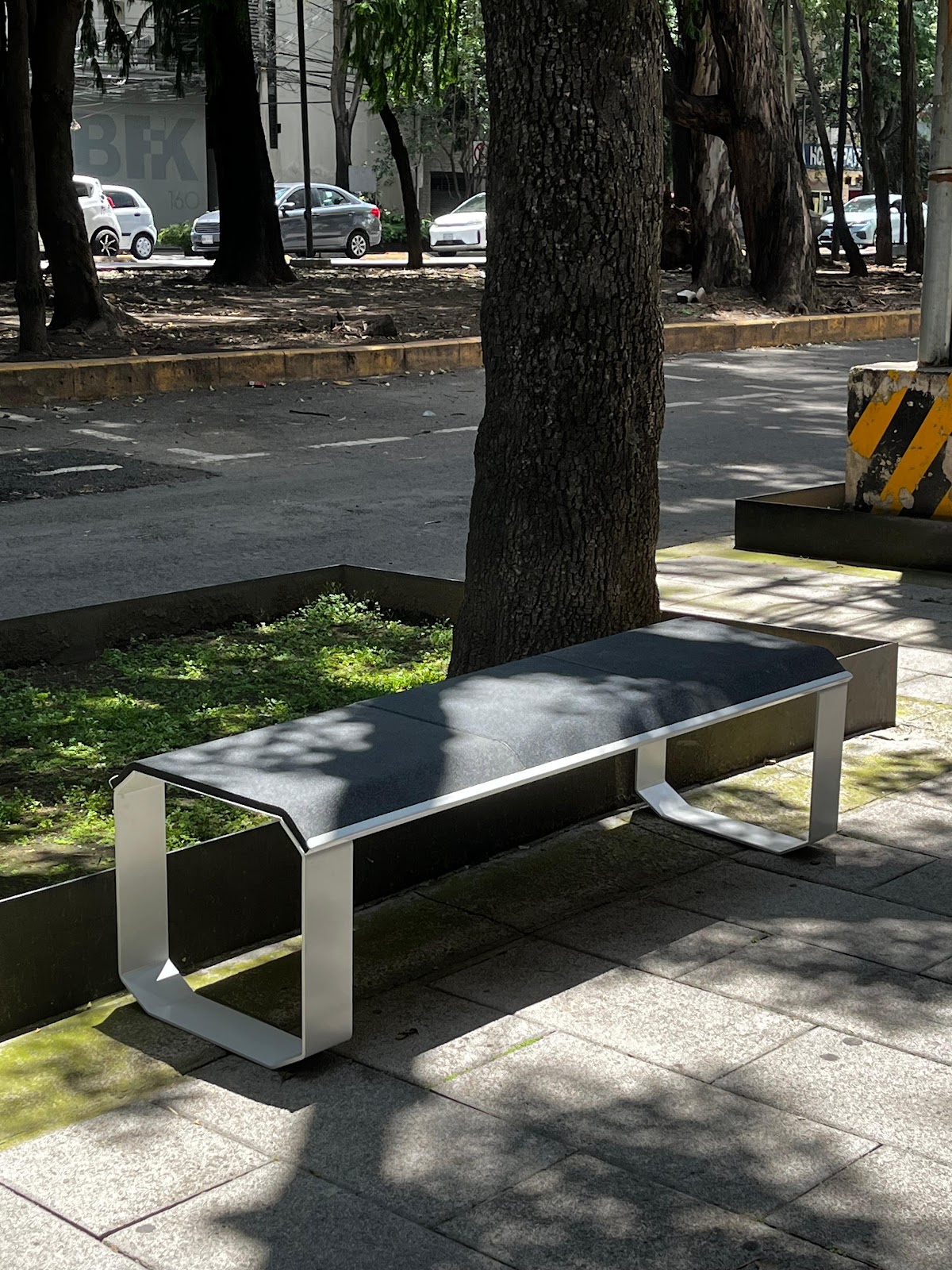 Colección Comfort nace con la intención de devolver comodidad y dignidad al espacio público. Se trata de una línea de mobiliario urbano que combina la geometría limpia de la estructura de acero con el eco-rubber, material elaborado a partir de llantas recicladas. El resultado equilibra resistencia y suavidad, solidez y flexibilidad. Las superficies amortiguan y suavizan la experiencia de sentarse, transformando los desechos de la movilidad en lugares de descanso donde detenerse y compartir. Cada pieza ofrece comodidad y una ligera flexión al usarse, alejándose de la rigidez habitual y explorando la posibilidad de acoger y de cuidar. La colección propone un gesto simbólico: reconvertir la huella de la ciudad. Como la maleza, surge en la adversidad y resiste, recordando que la comodidad en el espacio público es un derecho colectivo.