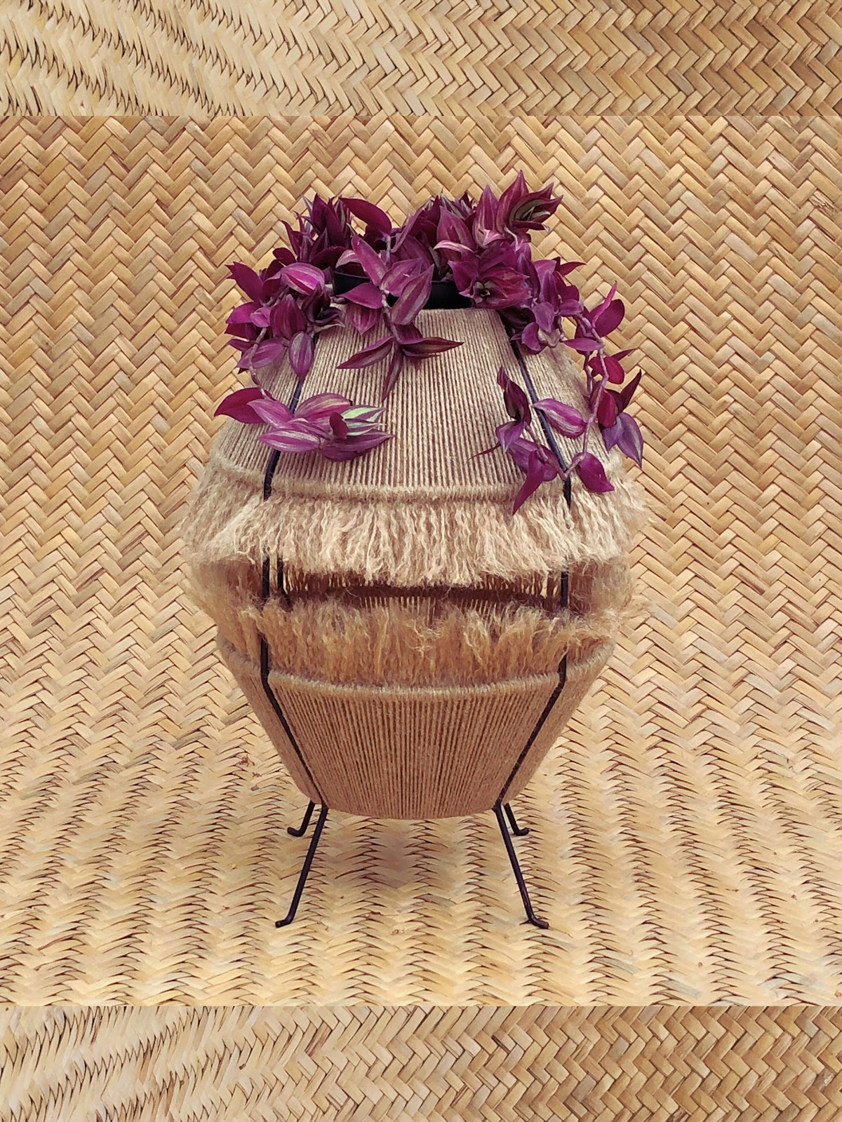 Laboratorio de Puntadas es un proyecto de exploración textil que metodiza el error como detonante de innovación formal y material. Cada portamaceta es un espécimen único, resultado de experimentar con la tensión y la estructura de la puntada en fibras naturales de origen vegetal y animal, tejidas sobre un soporte rígido que define su forma escultórica. Este proceso de creación, lento y artesanal, trasciende la decoración para proponer piezas de autor donde lo imperfecto deviene en la máxima expresión de valor estético y conceptual. Son objetos que dialogan con el espacio arquitectónico desde la textura, el cuerpo y la morfología orgánica.