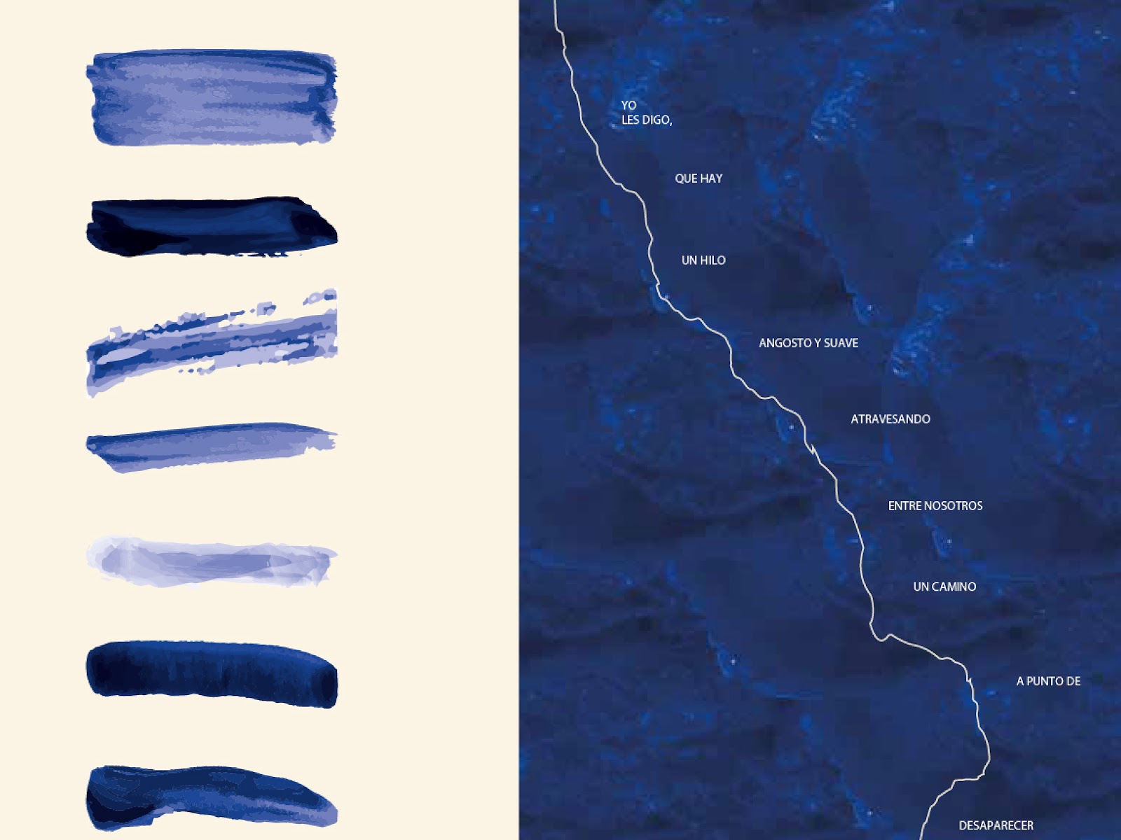 “Tendremos que partir montañas” es un cartel que nace como respuesta a la censura y al silenciamiento impuestos por el gobierno de ultraderecha de Nayib Bukele en El Salvador. Es también un homenaje a la resistencia de periodistas y medios independientes —El Faro y Alharaca—, que persisten en su lucha por la libertad. La pieza reconstruye, con fragmentos de sus textos, la imagen de un río salvadoreño contaminado por la explotación minera promovida por el propio Bukele. Sobre ese cauce crece una maleza de palabras que resiste, se enreda y avanza, en defensa de la libertad y la memoria. El título retoma, de manera crítica, una frase del presidente —“Si queremos desarrollo, tendremos que partir montañas”— para subrayar lo que está en disputa: el derecho a proteger la tierra, el hogar y la libertad. Mi madre es salvadoreña. El Salvador también es mi casa.