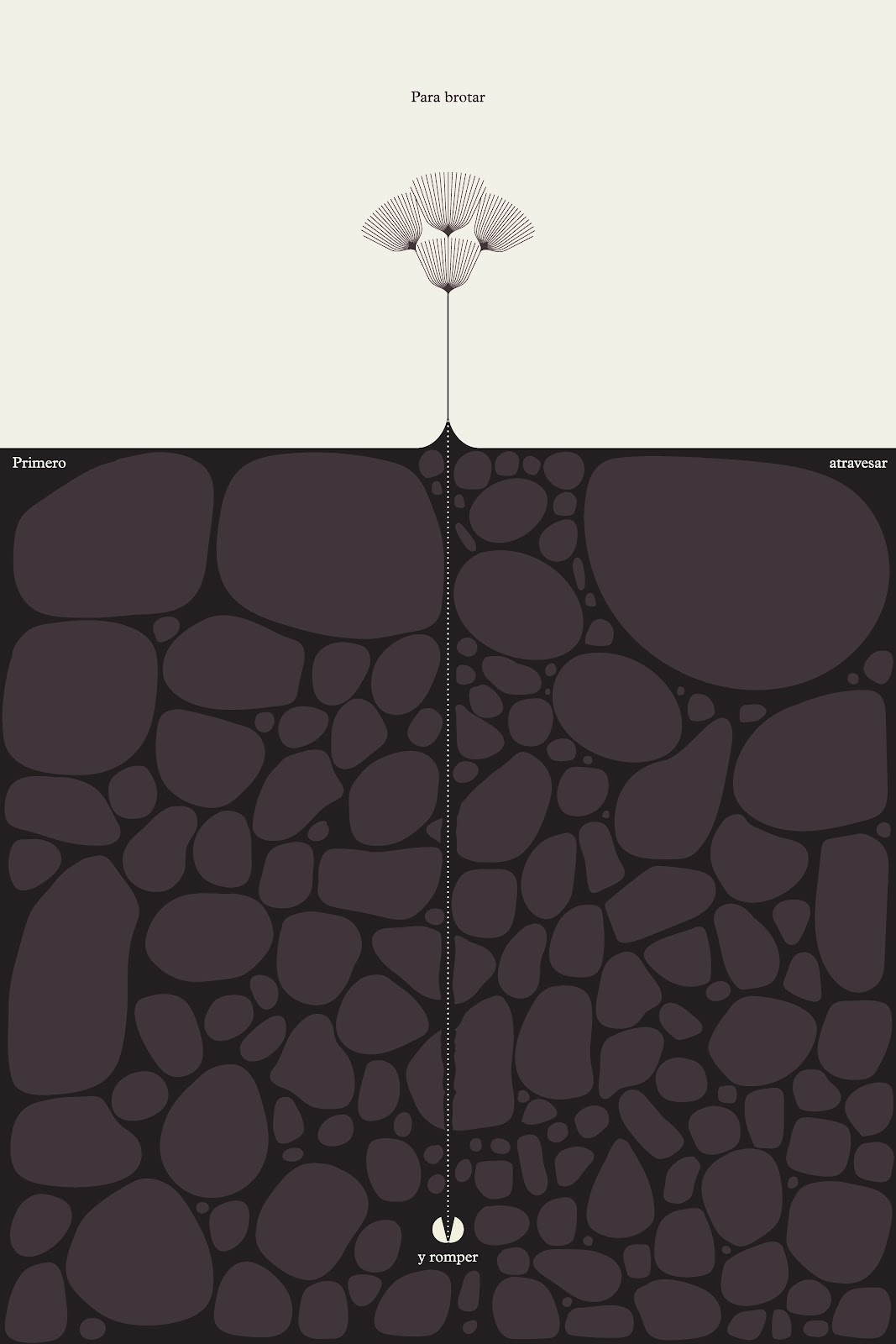 La maleza no florece: se impone. Es incómoda. Se abre paso en la hostilidad, no para adaptarse, sino para resistir. Este cartel es una visión de ese recorrido: el trayecto de una idea. Un brote nuevo que, como la maleza, comienza con una semilla —una inquietud— que debe abrirse paso, romper, atravesar, desafiar e incomodar para, al final, prevale