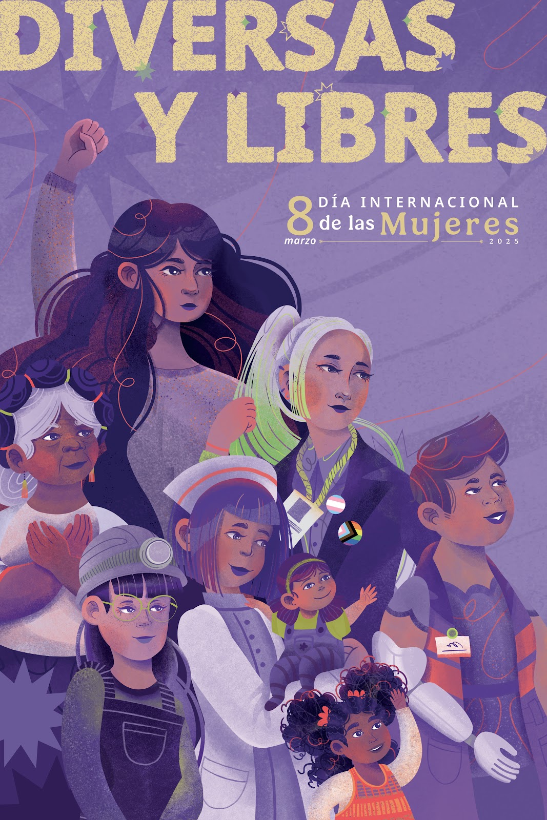 El cartel conmemorativo del 8M representa a mujeres trabajadoras de distintos sectores laborales, reflejando la amplitud de formas en que se habita la experiencia de ser mujeres. También muestra cómo han luchado históricamente frente a las dificultades sociales y simboliza sus múltiples victorias por habitar el mundo de nuevas maneras. Cada trazo busca transmitir cercanía, respeto y autenticidad. A demás de informar, esta pieza acompaña y propone abrazar la vida cotidiana de las mujeres en su pluralidad y extensa diversidad. Las mujeres con nuestros aportes en todos los espacios estamos transformando la vida.
