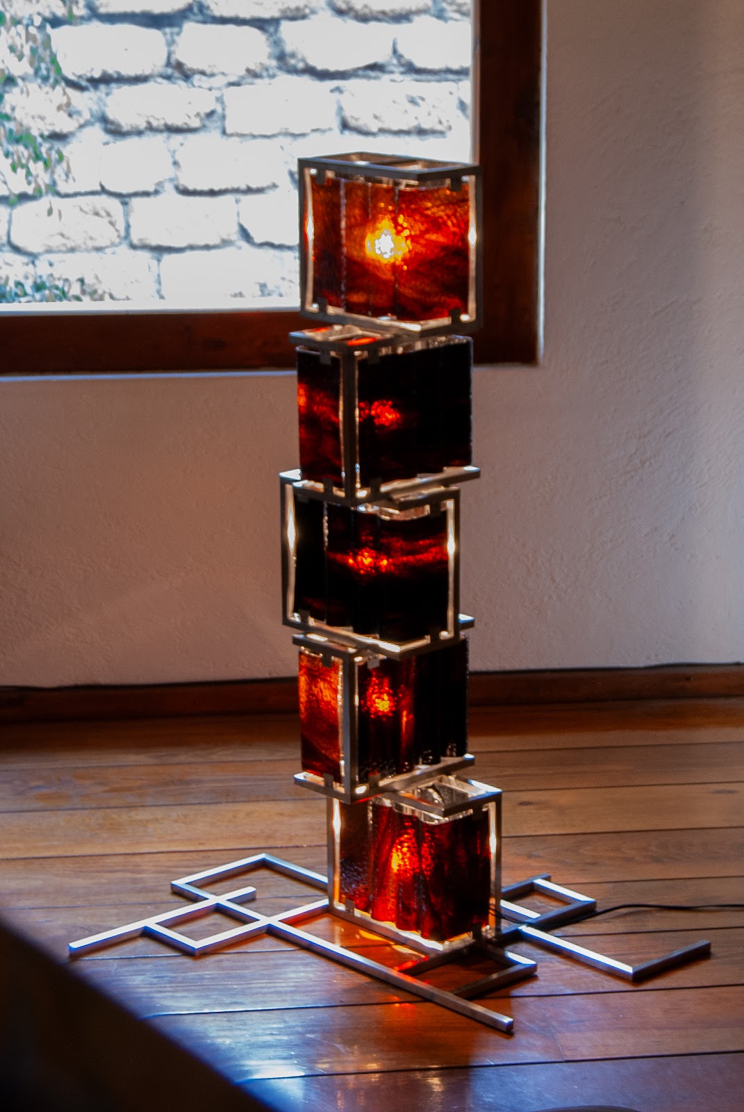 El concepto de representar a las poblaciones urbanas en México a través de la imagen de un six-pack de cerveza se refleja en el diseño y la construcción de la luminaria. La construcción de los paneles de la luminaria está hecha con vidrio reciclado proveniente de botellas de cerveza y refresco. Esta elección se hizo porque las botellas de vidrio son icónicas en la Ciudad de México. La estructura metálica esta inspirada en los núcleos urbanos de todo el país, con su retícula ortogonal que eventualmente se exparce en la periferia y sus edificios cuadrados, la base se basa en estos flujos de personas que se mueven por las calles y que dan forma a nuestras ciudades, mismas que son el producto de una cultura cambiante que evoluciona día a día. La construcción de la luminaria consiste en seis estructuras colocadas una encima de la otra, generando así una torre de 5 cajas con la base siendo una desdoblada en la forma de las calles. Cada estructura está rotada de manera distinta para romper con el ritmo visual que puede generar una forma repetitiva, siendo esta repetición inexacta e inclusice orgánica la misma que se materializa en las ciudades. Las cajas tienen dos paneles de vidrio hechos con botellas recicladas de cerveza y refresco, estos paneles contienen y difuminan la luz, dándole un tono ámbar cálido que logra escapar los lados y atravesar el material dejandonos ver su beta.