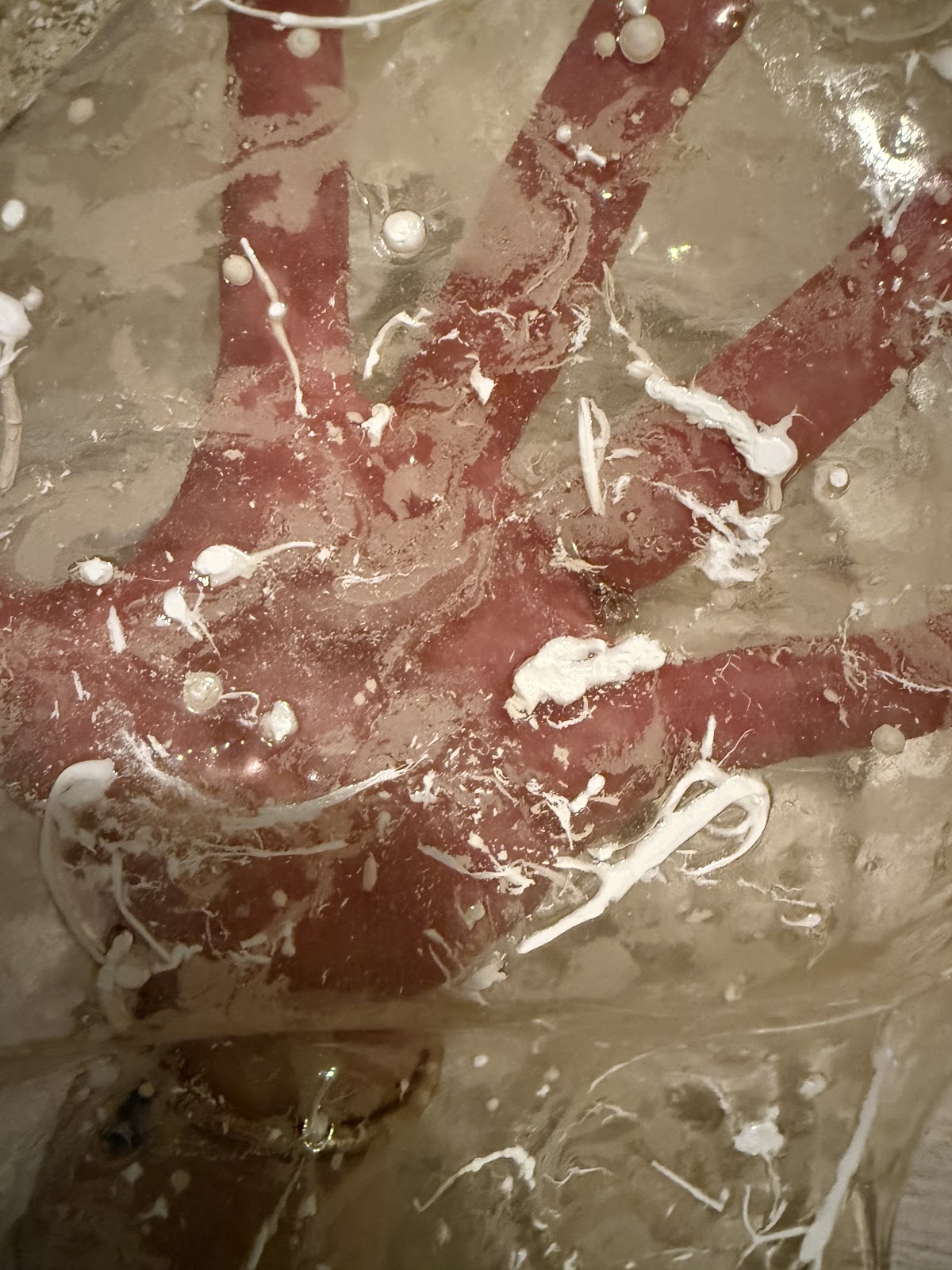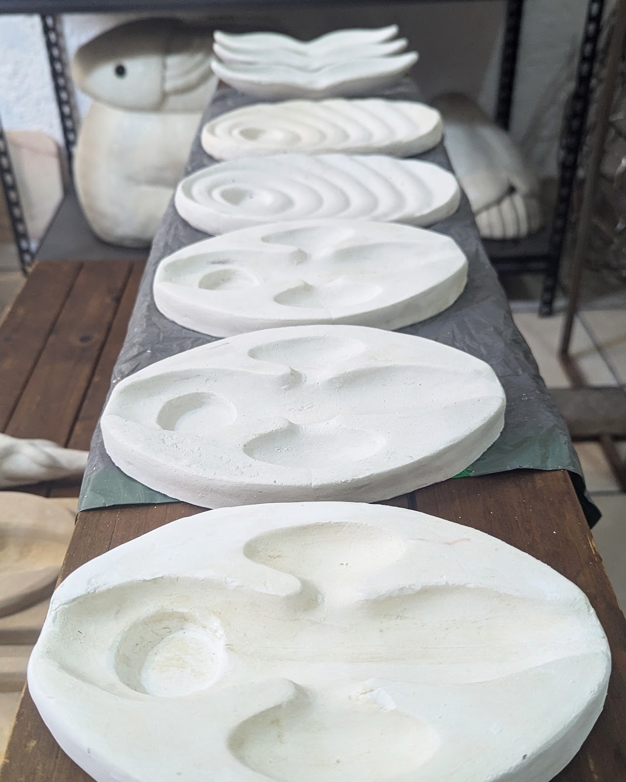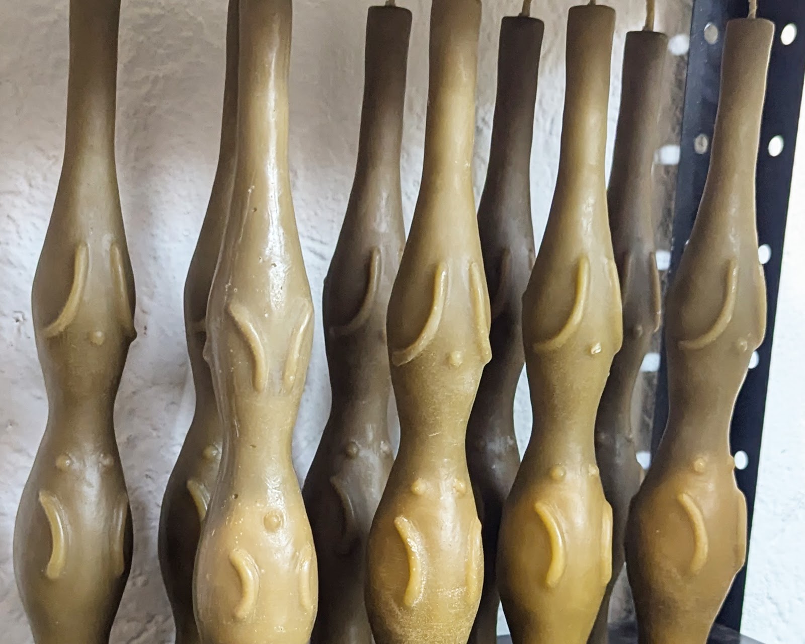 Larva Mater presenta sus primeras piezas como una colección de velas, portavelas y porta inciensos, elaboradas con materiales como cera de abeja, micelio, cerámica y aluminio. Cada objeto es diseñado y modelado a mano en plastilina para crear moldes que permiten el vaciado en cera. Las bases se modelan en barro de Oaxaca, se vacían en yeso y se funden en aluminio mediante moldes de arena, mientras que las piezas cerámicas se cuecen en horno de gas. Las cajas se tallan en MDF y se esculpen con gubias para generar moldes donde se cultiva micelio. El proyecto explora lo ritual, lo orgánico y lo simbólico.