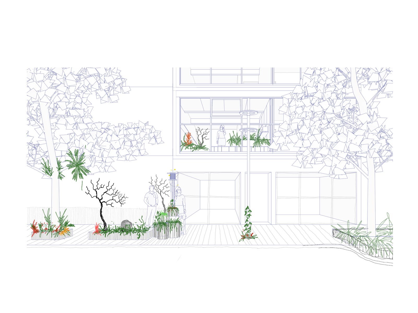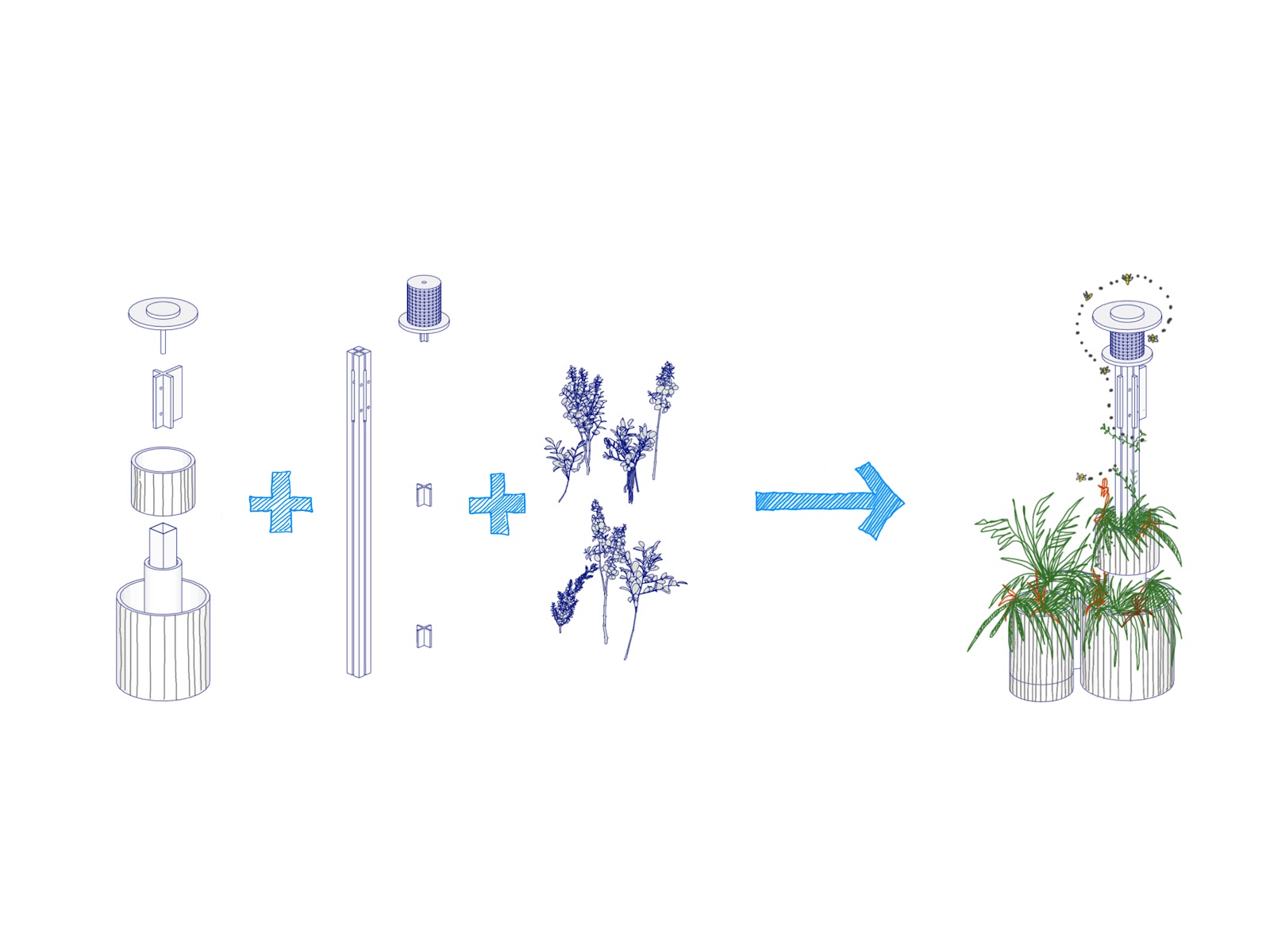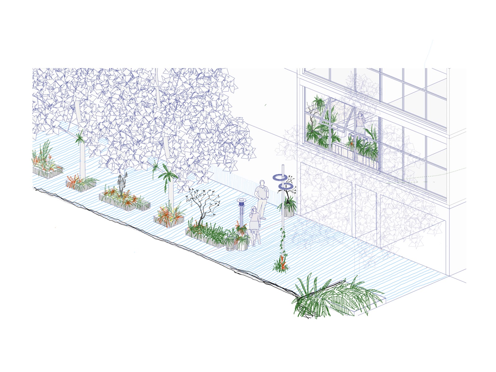 Ver ubicaciónUna pieza de terrazo y madera emerge entre jardineras para enlazar la banqueta con espacio_CINCO. Más que un objeto, funciona como hábitat para polinizadores, señal y refugio, convirtiéndose en un marcador urbano y un punto de encuentro. La intervención dialoga con el proyecto Nativas de las Calles y la actividad Vandalismo y resistencia vegetal, y se complementa con la plantación de un copal en la jardinera contigua, ejemplares adicionales en macetas y epífitas que habitarán el árbol existente. La materialización de la pieza se concibió como un pretexto para diseñar, invitar y trabajar colectivamente. Ideada por estudio_PEC con la colaboración de Concrete Workshop, Luvina Taller y la intervención vegetal de asj.PAISAJE, el hito cristaliza la vocación colaborativa de la red de espacio_CINCO. Además, las especies vegetales estarán disponibles para su adquisición, extendiendo la experiencia hacia otros espacios y multiplicando los beneficios de esta práctica comunitaria.