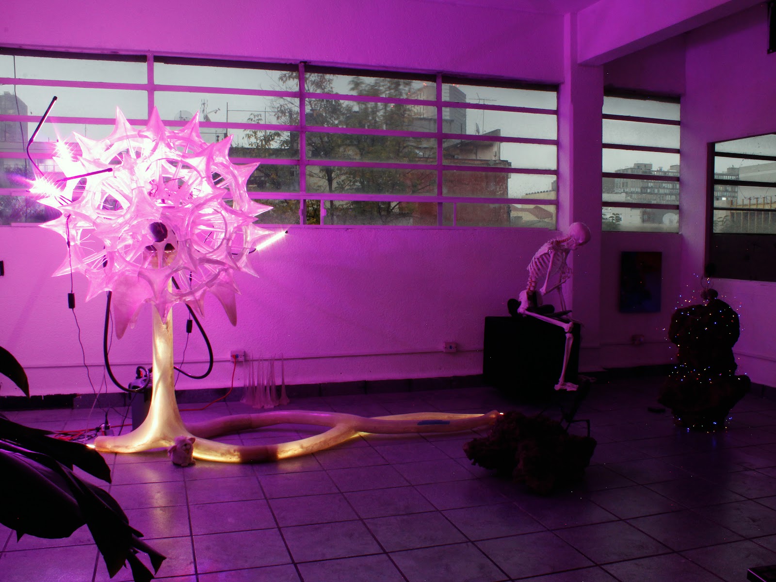 Ver ubicaciónEl estudio abre sus puertas para mostrar esculturas, instalaciones y objetos en proceso, piezas que combinan tecnología, biología y poética material. El público podrá observar maquetas, prototipos, ensayos y errores, elementos que forman parte de un trabajo en constante mutación y libre exploración creativa.